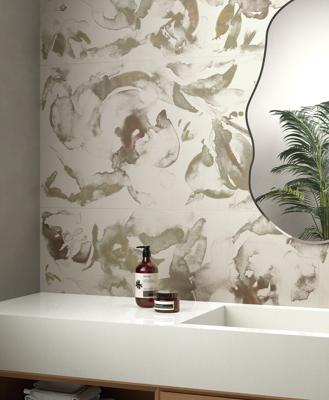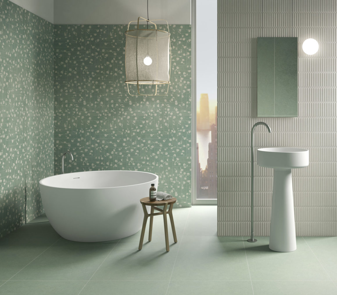 Les fabricants ne cessent de s’inspirer des couleurs extérieures dans ce qu’elles ont de léger et de rassurant.  Dotée de pigments rappelant l’eau, le feu et la terre, la palette de teintes tendance infuse l’essence de la nature dans chaque espace. Même lorsque les carreaux se parent de motifs graphiques.