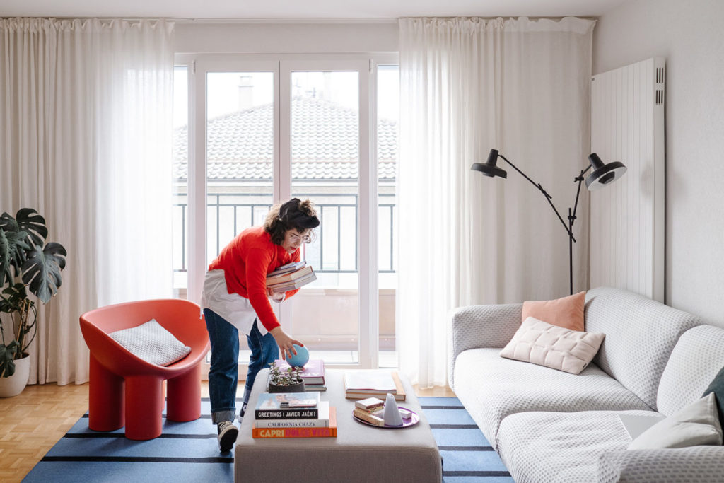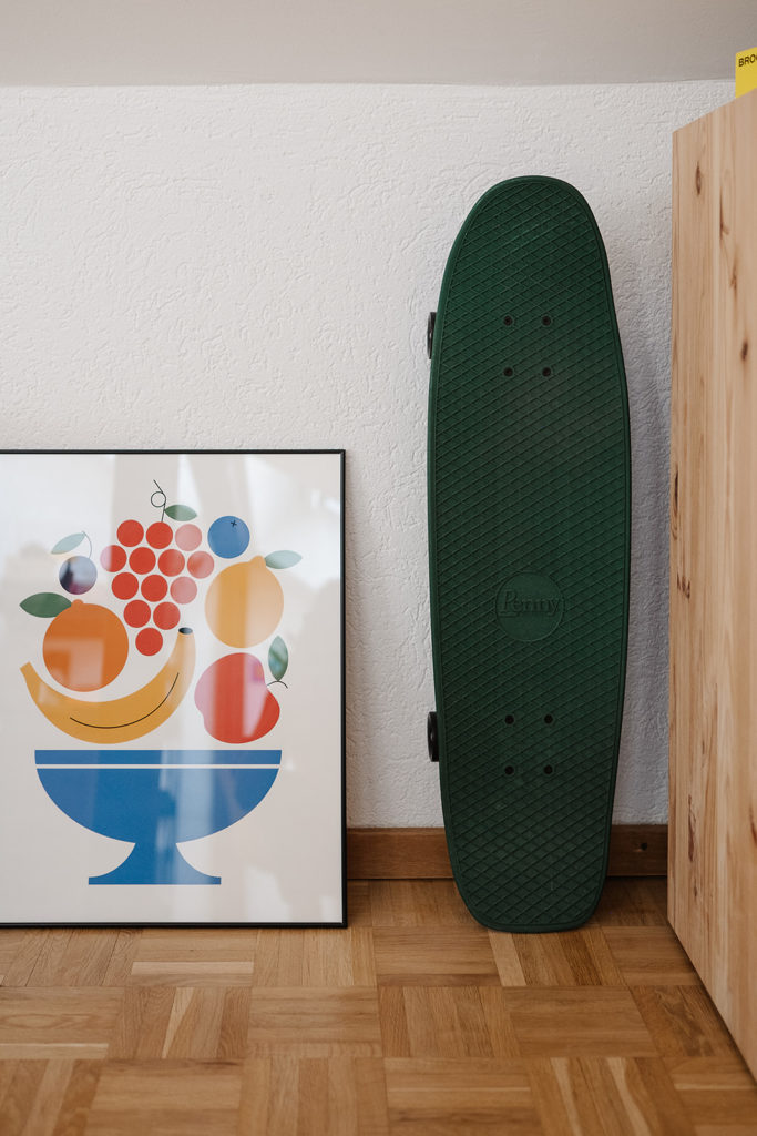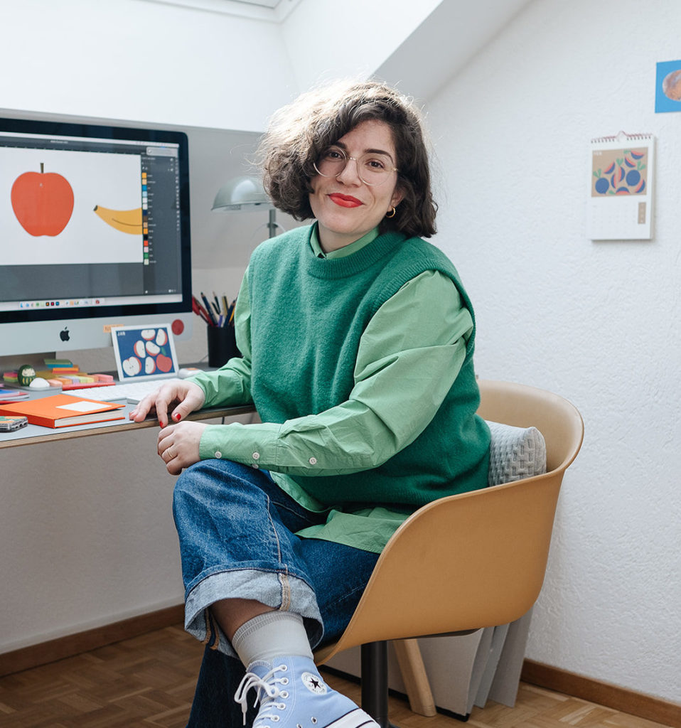 De plus, Rocío a récemment dessiné deux tapis en collaboration avec la boutique Chic Cham. Prochainement, elle se réjouit de pouvoir travailler avec un ébéniste Lausannois pour réaliser une pomme en bois. On pourrait même retrouver un jour dans nos cuisines, des ustensiles (tabliers, sacs à pain…) avec la touche très personnelle qui caractérise le travail de Rocío. Car pour l’illustratrice finalement, peut importe le support ou la matière (digital, papier, bois…), tant que l’on peut en faire un terrain de jeux d’expérimentations et apporter du bonheur et de la couleur dans le quotidien.