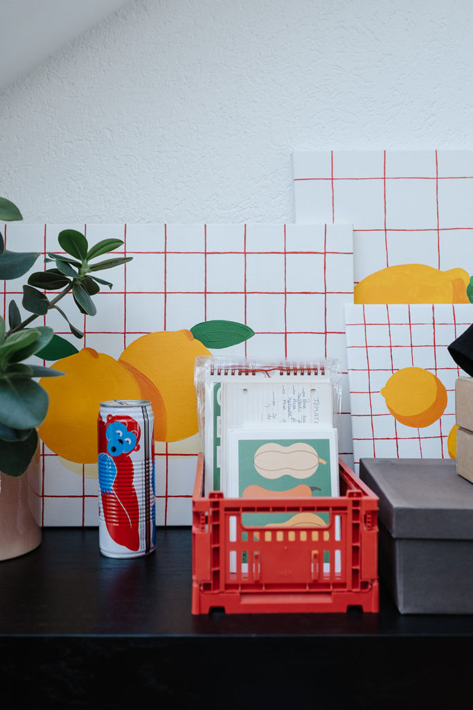 En 2020, Rocío a fondé son propre shop, ce qui lui a permis de créer autant de produits qui sont la projection d’elle-même. Rocío a par exemple dessiné l’été dernier une série de casquettes colorées sur fond visuel de banane, poire et pomme. Les modèles ont été très appréciés; elle va donc réitérer une collection pour les enfants cette année. Par ailleurs depuis trois ans, elle édite son calendrier avec au dos de chaque mois, des recettes de sa grand maman, appuyées par une liste d’ingrédients et quelques conseils. Chaque page peut être détachée et gardée comme fiche de recette, si bien que l’on peut toujours profiter d’une recette de tortilla aux brocolis par exemple.