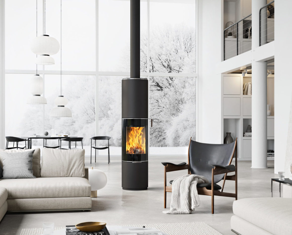 Sur les poêles à bûches avec distribution de chaleur par ventilation forcée, un ventilateur est activé lorsque l’intérieur du foyer atteint une certaine température. La montée en température de la pièce est ainsi plus rapide et plus uniforme. Le système requière certes un peu d’électricité, mais les poêles à ventilation forcée, lorsqu’ils sont dotés d’une chambre de combustion moderne, permettent de mieux utiliser la chaleur produite par les flammes. Ce qui les rend gagnants en termes d’impact écologique.