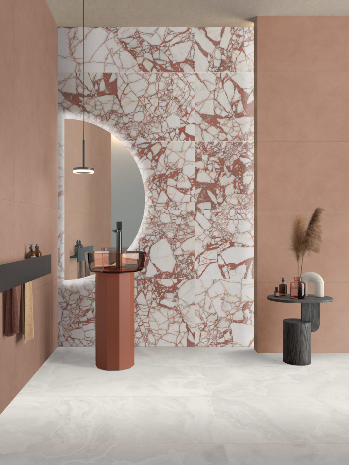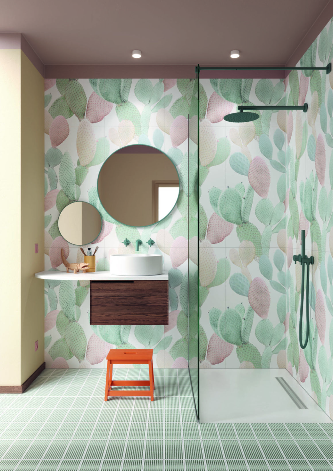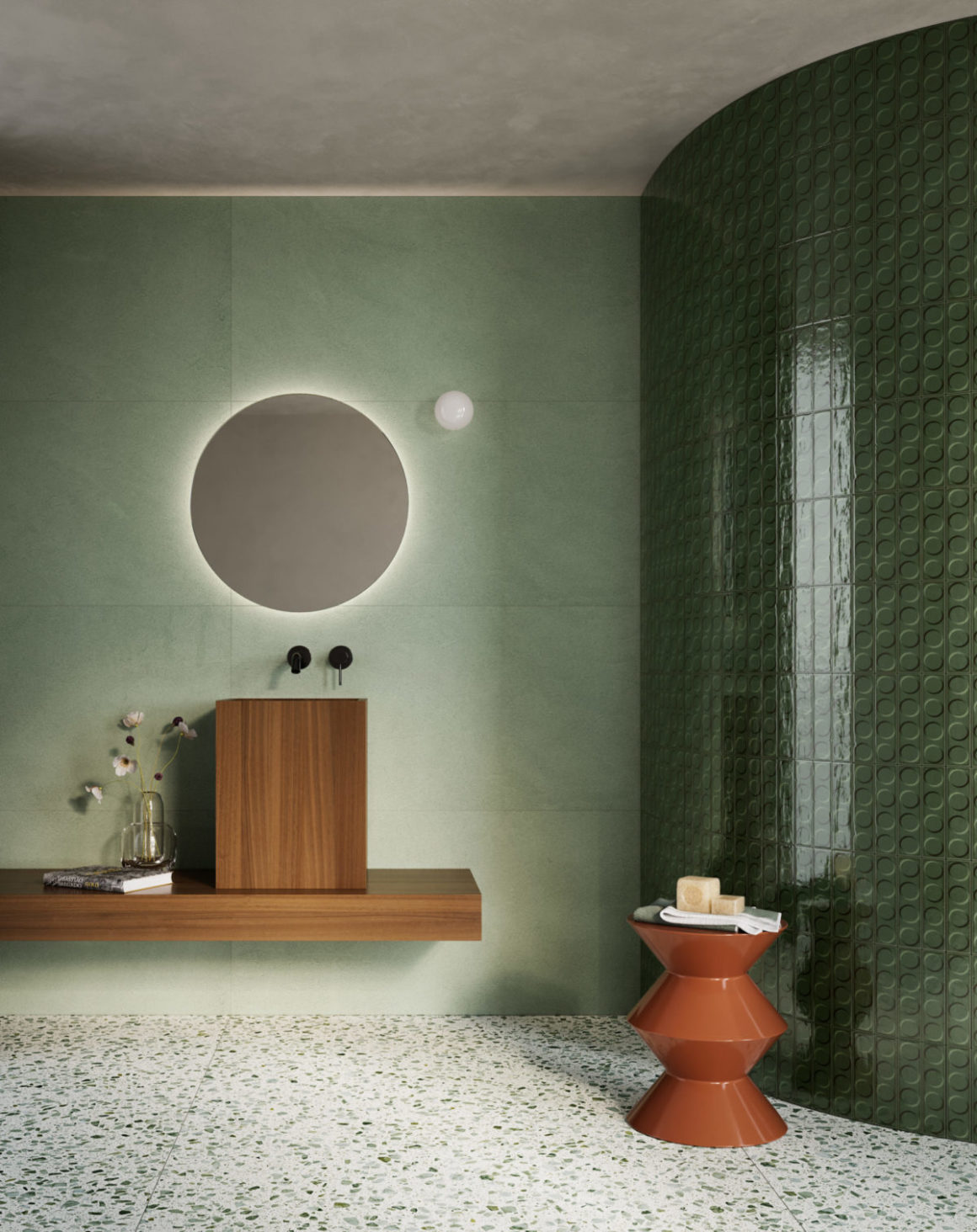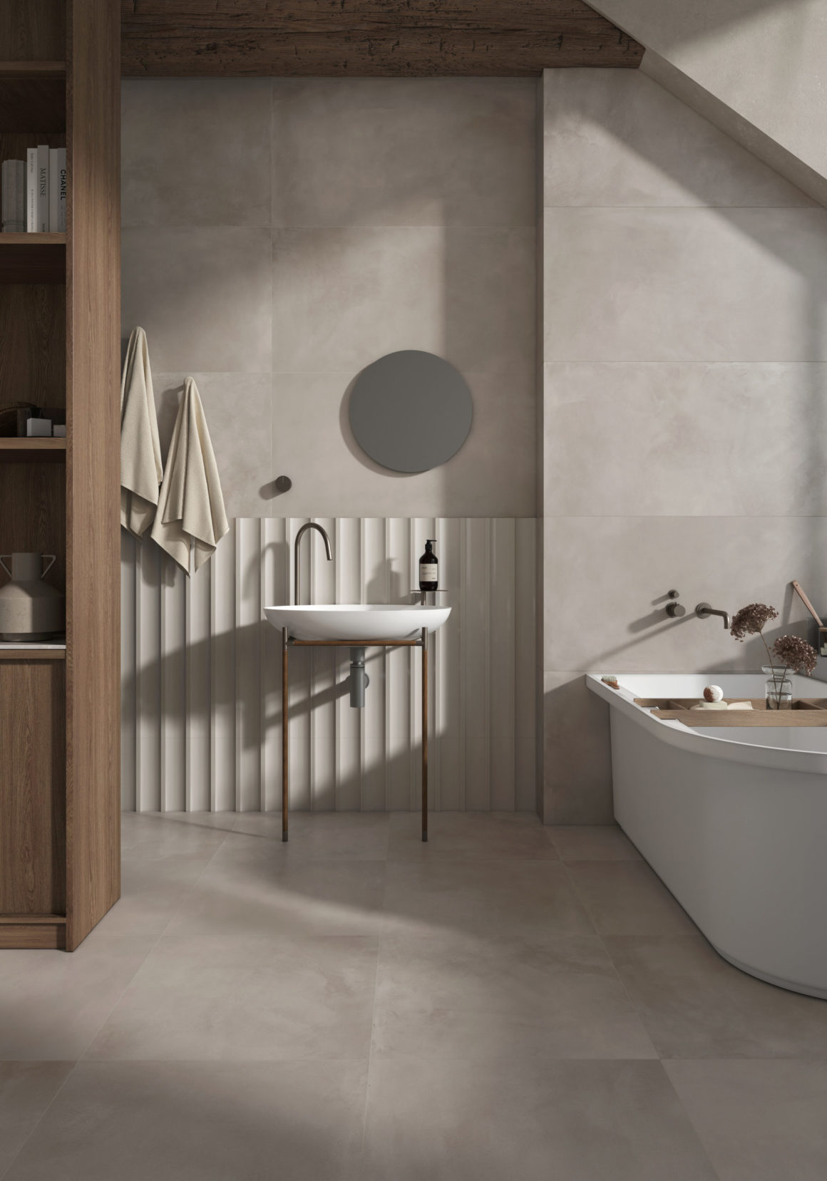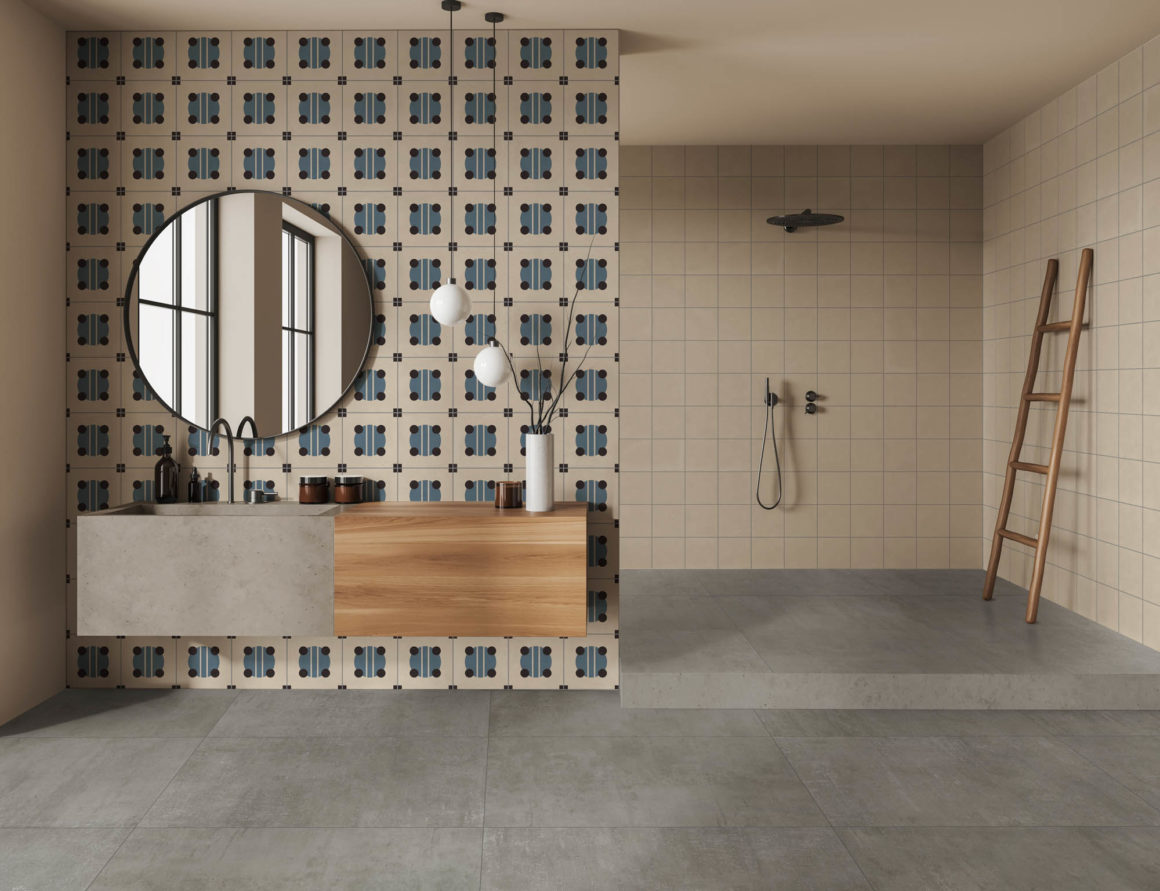 La tendance: dans l’histoire du carrelage,les années 1970 ont vu l’avènement des carrelages à motifs floraux et couleurs vives, reflétant l’optimisme de cette époque. Aujourd’hui, on aime les tons plus sages et les carreaux plus grands, voir vraiment plus grands. Ainsi dans la salle de bain, on marie volontiers les dalles en céramique XXL à effet papier peint avec du carrelage imitation ciment mat.