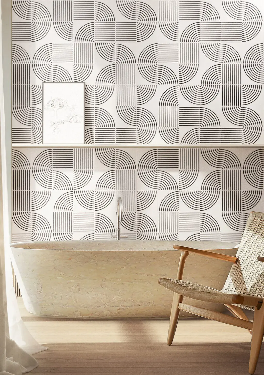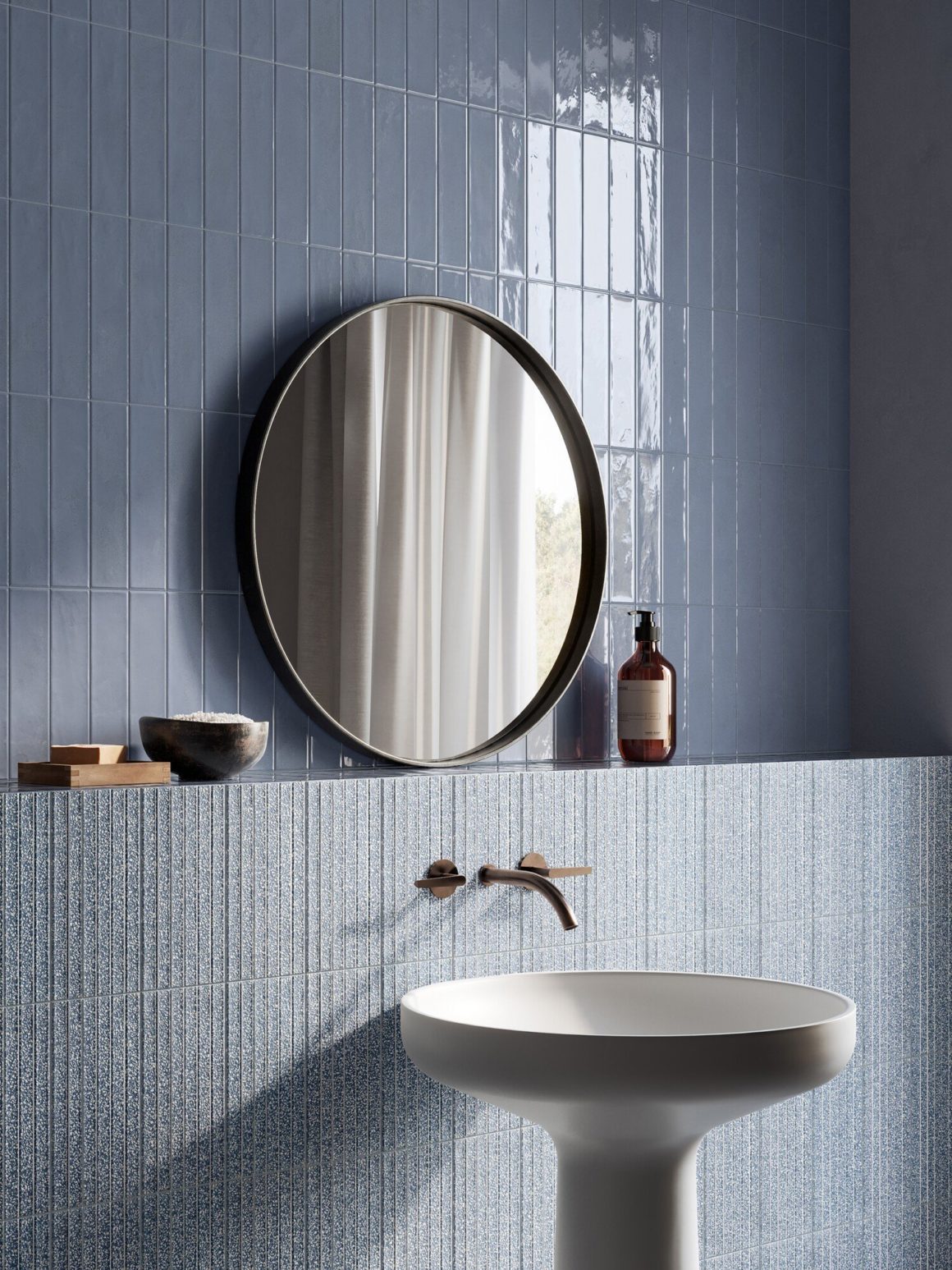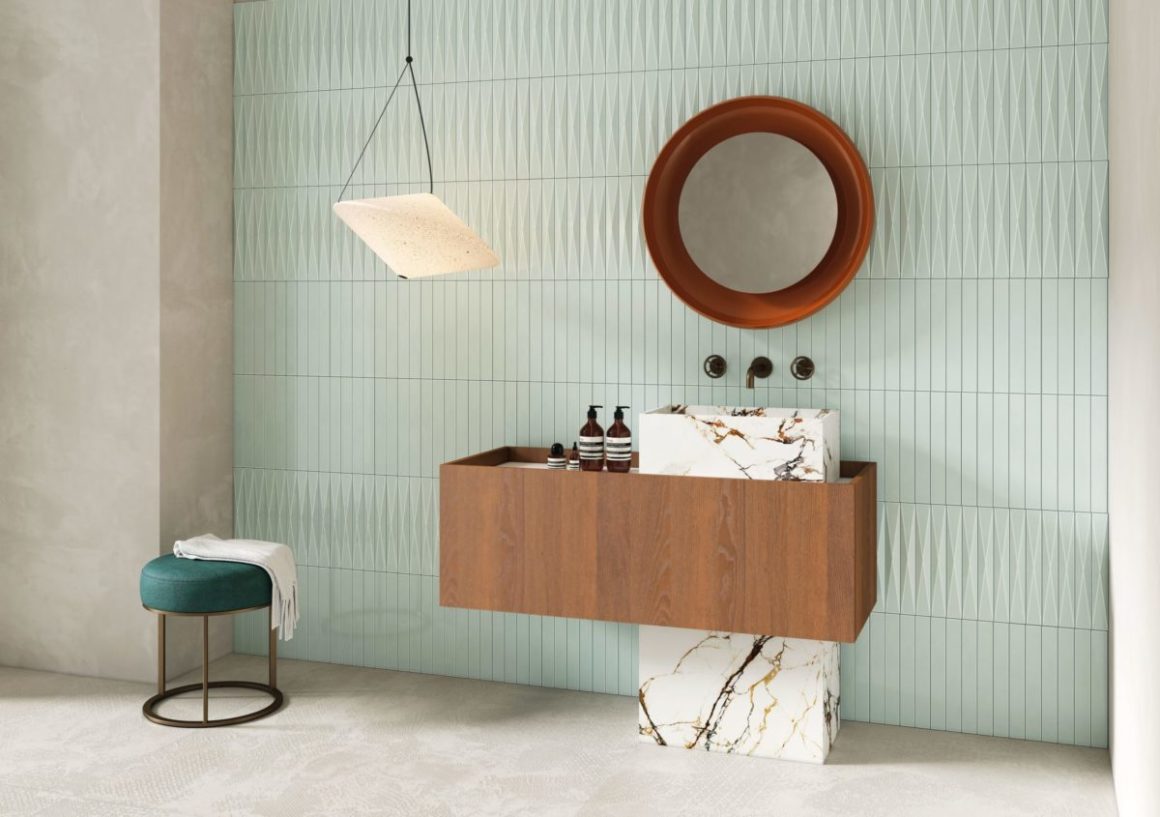 La tendance: le mélange de motifs et de textures a commencé à devenir tendance dans les années 2010, époque où les fabricants de carrelage commencèrent à proposer des collections avec des carreaux différents mais pensés pour s’associer entre eux. Si les formats « baguettes » (longs et fins) gardent la faveur des décorateurs au sein de ces combinaisons audacieuses, les surfaces striées permettent aujourd’hui de renouveler les effets.