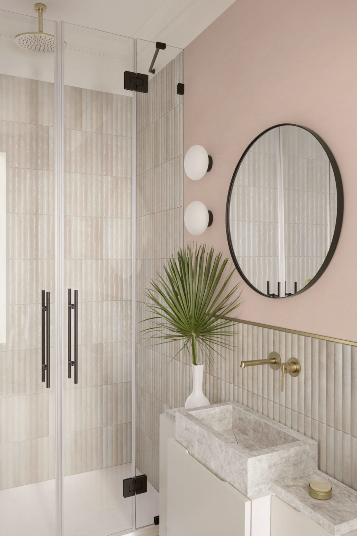 La tendance: les années 1980 ont été marquées par l’introduction du marbre, offrant une esthétique plus luxueuse et sophistiquée aux salles de bains. Longtemps oublié, ce matériau a fait son grand retour depuis une dizaine d’années avec le carrelage imitation marbre. On le marie encore souvent avec des robinets dorés ou laiton. Mais la tendance veut aussi qu’on allie ce type de finition avec des éléments qui évoquent la nature.