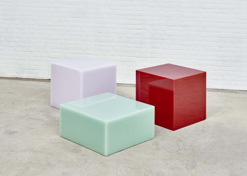 Le travail sur le réfléchissement de Sabine Marcelis a abouti sur des résultats passionnants. La créatrice sait à merveille capturer et reproduire les effets de la lumière frappant des masses de matière. Sa série de miroirs Seeing Glass module les longueurs d’onde et éparpille les rayons, pour mieux amplifier les phénomènes de réfraction et réflexion. Ses luminaires Totem ou Aura, ses tables d’appoint Candy Cube et Virtual Tactil révèlent les effets magiques de l’interaction de la résine translucide avec la lumière.