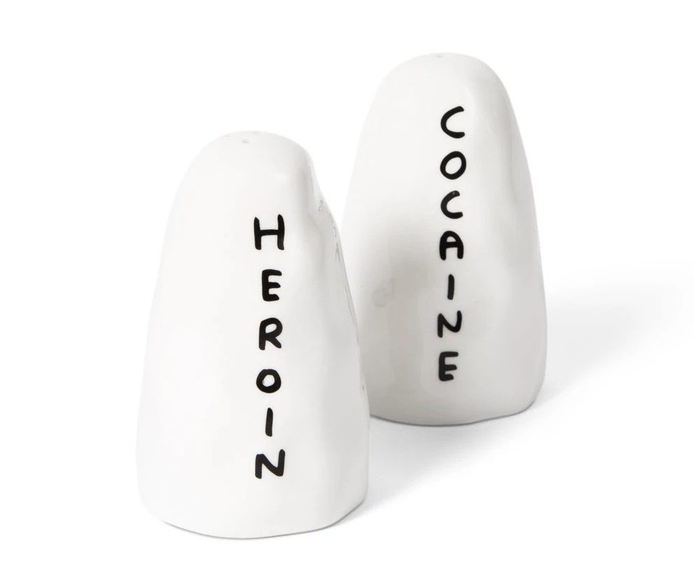 Salière et poivrière en porcelaine Cocaine and Heroine, design David Shrigley, Third Drawer Down