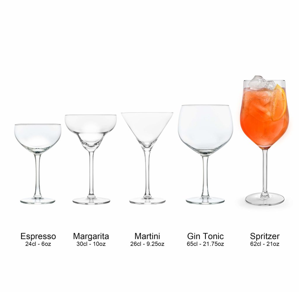 Entre verres ballons à pied, gobelets sur pieds courts, verres tumbler (grands et fins pour long drinks) et coupes sur pieds (destinées aux boissons sans glaçons), voici quelques jolis verres à cocktails. Ils pourraient vous servir à déguster un bon Spritz ou d’autres aperitivi rafraîchissants.