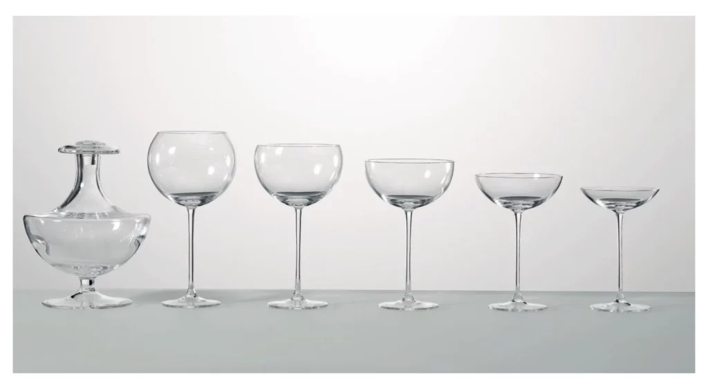 Coupes à cocktails et à vin sur pied. Collection de verres La Sfera. Marque Driade.
