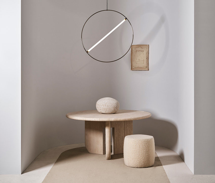Mais où sont passées les tables rectangulaires? Après les tables  droites et minimalistes, voici venu le temps du sculptural. Tandis que les volumes s’épaississent, les pieds adoptent des lignes visuellement impactantes et les plateaux s’arrondissent. Ceci, dans le salon et la salle à manger, sur des modèles hauts et bas, en intérieur et en extérieur. À ce jeu là, les formes jouent les intermédiaires entre rond et carré, creux et plein, droit et courbe. Si bien que certains parlent en déco d’une tendance « menhir ». Côté matériaux, c’est aussi le grand retour du travertin qui s’installe au rang des matériaux tendance à côté du marbre, du bois et de la laque. La dernière édition du Salone del mobile a largement confirmé ces tendances. Nos coups de cœur pour changer de style rien qu’en changeant de table!