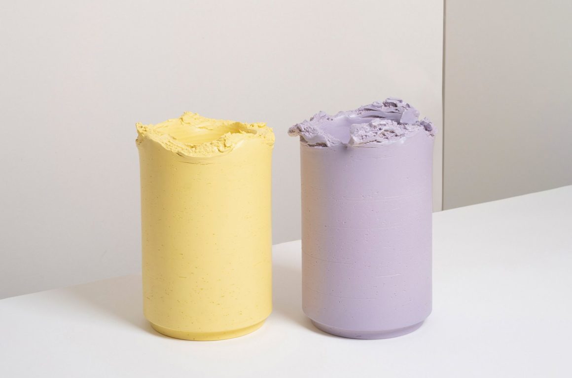 Les vases Découpage sont composés chacun d’un récipient cylindrique coulé et d’un ensemble de plaques et de barres abstraites en argile, qui peuvent être fixées ou placées à l’intérieur du vase.