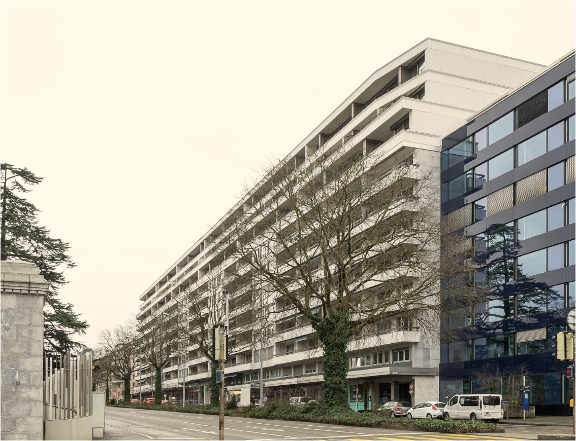 En ajoutant trois niveaux à cette barre des années 1960, rue de Lausanne 139, le bureau Lacroix Chessex a complété sa forme et transformé le long mur trapu en un objet élancé qui peut exister parmi ses voisins contemporains du quartier de la gare de Genève-Sécheron. La surélévation a pu être construite en béton, en continuité avec l’ossature et la façade. Côté lac, les balcons filants mais étagés en retrait appuient en légèreté l’horizontalité de l’ensemble, tandis qu’à l’arrière les parapets fusionnent avec les verticales pour s’accorder à la grille existante. En optimisant le nombre de pièces et en se libérant de l’adéquation structure-cloisonnement, les architectes ont pu ajouter cinquante appartements. s’accorder à la grille existante.