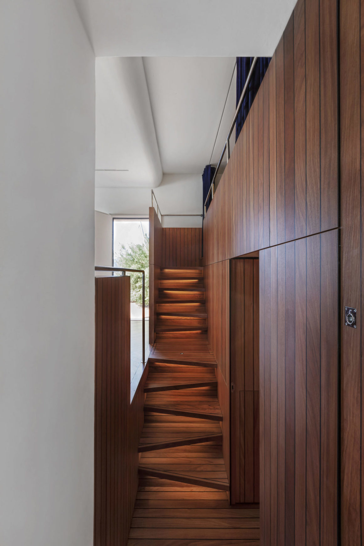 Des travaux ont été réalisés dans les intérieurs où les espaces ont été remodelés et des escaliers de liaison créés entre les pièces. Un important travail sur mesure a été conçu pour le mobilier dans le but d’optimiser les espaces, sans sacrifier le caractère des lieux. L’idée était de restaurer l’intérieur dans l’esprit d’un yacht club, en osmose avec la mer.» explique Michele Pasini.