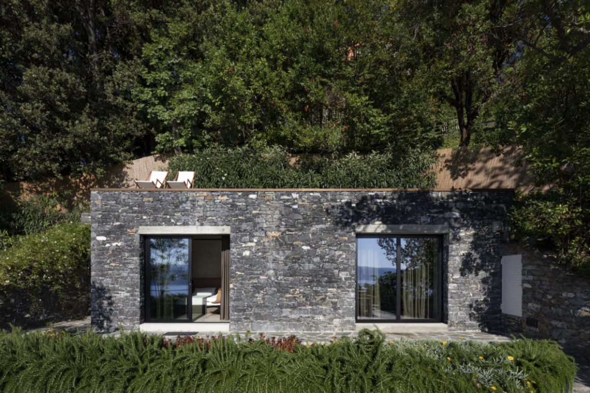 Niché dans un endroit stratégique en bord de mer Zoagli en Ligurie, ce bâtiment de surveillance construit lors de la Première Guerre mondiale a été transformé en lieu de vie. Baptisé La Vedetta (la vigie) il avait été acheté en 1931 par un officier allemand qui avait ajouté deux maisons d’invités. Massimo Giorgetti a soigneusement restauré la propriété en tenant compte de son passé et de son emplacement spectaculaire.