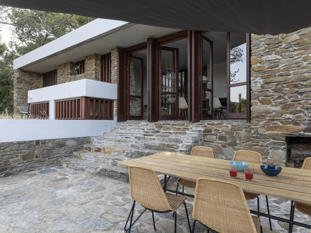 Prenant place délicatement dans la pente, entre les arbres, la construction qui nous intéresse ici se structure sous forme de plusieurs restanques (un terme issu du provençal désignant des murs de retenu en pierre sèche), aménagées en terrasses et offrant une multitude de prolongements extérieurs.